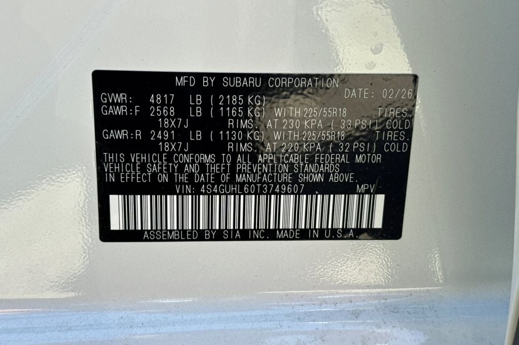 - Radio: Subaru 11.6" Multimedia Plus System -inc: AM/FM stereo, HD Radio, multi-touch gesture high resolution display screen, voice activated controls, Bluetooth® audio streaming and hands-free phone connectivity, Bluetooth® hands-free SMS text messaging connectivity, iPod control capability, smartphone integration: wired and wireless Android Auto w/full screen view and wireless Apple CarPlay w/full screen view, USB and Over The Air (OTA) audio system update, steering wheel audio system and Bluetooth® control switches, 6 speakers (2 dash panel tweeter, 2 front door and 2 rear door), illuminated 3.5mm auxiliary input jack, illuminated front USB A and C input/charge ports, connected services operation indicator, SOS emergency assistance: red SOS button and enhanced roadside assistance: blue i-button