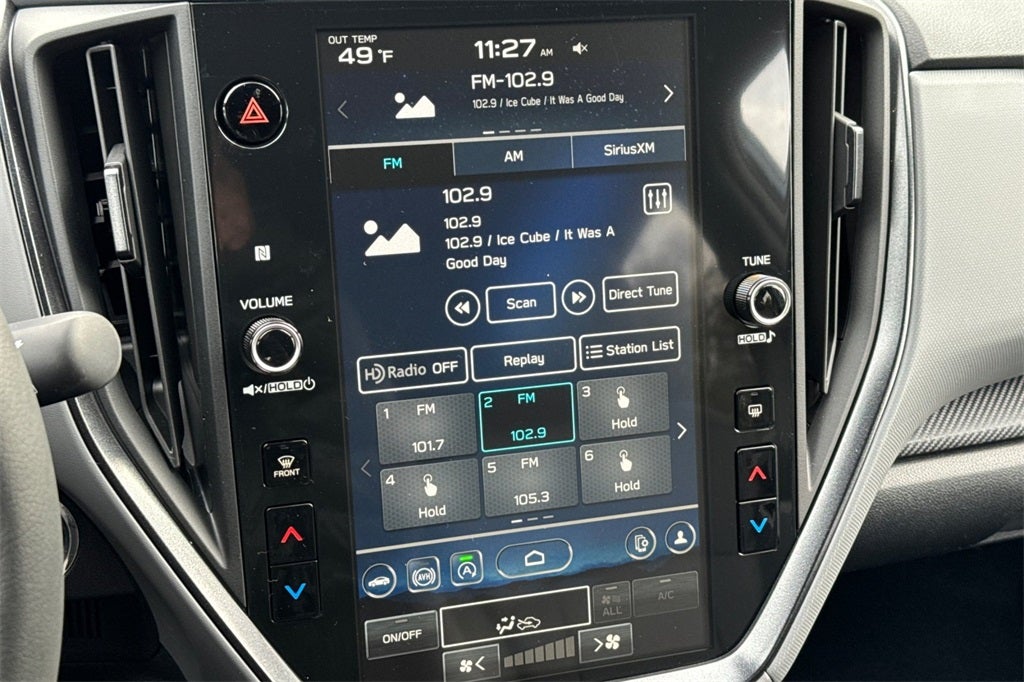 - Radio: Subaru 11.6" Multimedia Plus System -inc: AM/FM stereo, HD Radio, multi-touch gesture high resolution display screen, voice activated controls, Bluetooth® audio streaming and hands-free phone connectivity, Bluetooth® hands-free SMS text messaging connectivity, iPod control capability, smartphone integration: wired and wireless Android Auto w/full screen view and wireless Apple CarPlay w/full screen view, USB and Over The Air (OTA) audio system update, steering wheel audio system and Bluetooth® control switches, 6 speakers (2 dash panel tweeter, 2 front door and 2 rear door), illuminated 3.5mm auxiliary input jack, illuminated front USB A and C input/charge ports, connected services operation indicator, SOS emergency assistance: red SOS button and enhanced roadside assistance: blue i-button