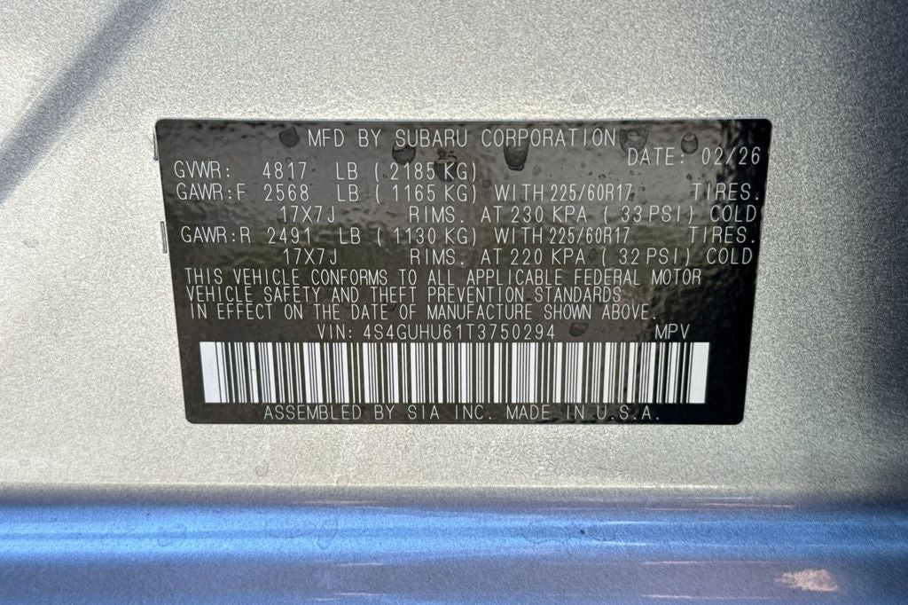 - Radio: Subaru 11.6" Multimedia Plus System -inc: AM/FM stereo, HD Radio, multi-touch gesture high resolution display screen, voice activated controls, Bluetooth® audio streaming and hands-free phone connectivity, Bluetooth® hands-free SMS text messaging connectivity, iPod control capability, smartphone integration: wired and wireless Android Auto w/full screen view and wireless Apple CarPlay w/full screen view, USB and Over The Air (OTA) audio system update, steering wheel audio system and Bluetooth® control switches, 6 speakers (2 dash panel tweeter, 2 front door and 2 rear door), illuminated 3.5mm auxiliary input jack, illuminated front USB A and C input/charge ports, connected services operation indicator, SOS emergency assistance: red SOS button and enhanced roadside assistance: blue i-button