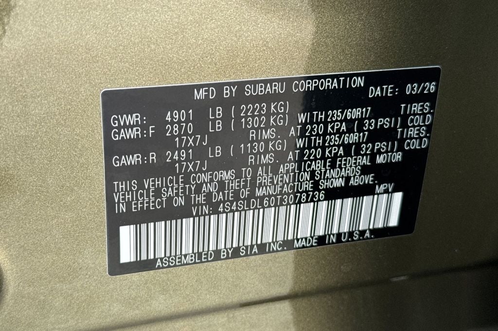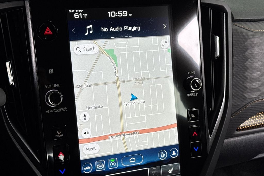 • Radio: Subaru 11.6" Multimedia Plus System -inc: valet mode, integrated center information display, AM/FM stereo HD Radio, multi-touch gesture high resolution display screen, voice activated controls, Bluetooth® audio streaming and hands-free phone connectivity w/SMS text messaging (refer to Subaru.com for cellphone compatibility), iPod control capability, smartphone integration: Android Auto and Apple CarPlay w/full screen view and wireless connection, SiriusXM satellite radio w/360L (free 4-month trial subscription included), USB and Over The Air (OTA) audio system update, steering wheel controls, 6 speakers, 3.5mm auxiliary input jack and roof mounted audio and satellite antenna