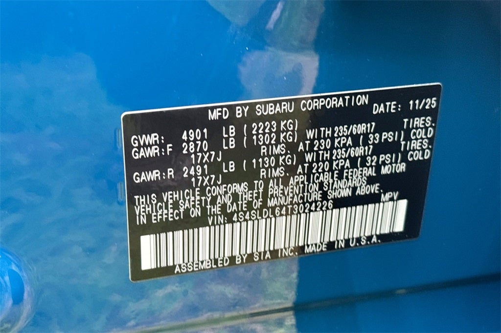 - Radio: Subaru 11.6" Multimedia Plus System -inc: valet mode, integrated center information display, AM/FM stereo HD Radio, multi-touch gesture high resolution display screen, voice activated controls, Bluetooth® audio streaming and hands-free phone connectivity w/SMS text messaging (refer to Subaru.com for cellphone compatibility), iPod control capability, smartphone integration: Android Auto and Apple CarPlay w/full screen view and wireless connection, USB and Over The Air (OTA) audio system update, steering wheel controls, 6 speakers, 3.5mm auxiliary input jack and roof mounted audio and satellite antenna