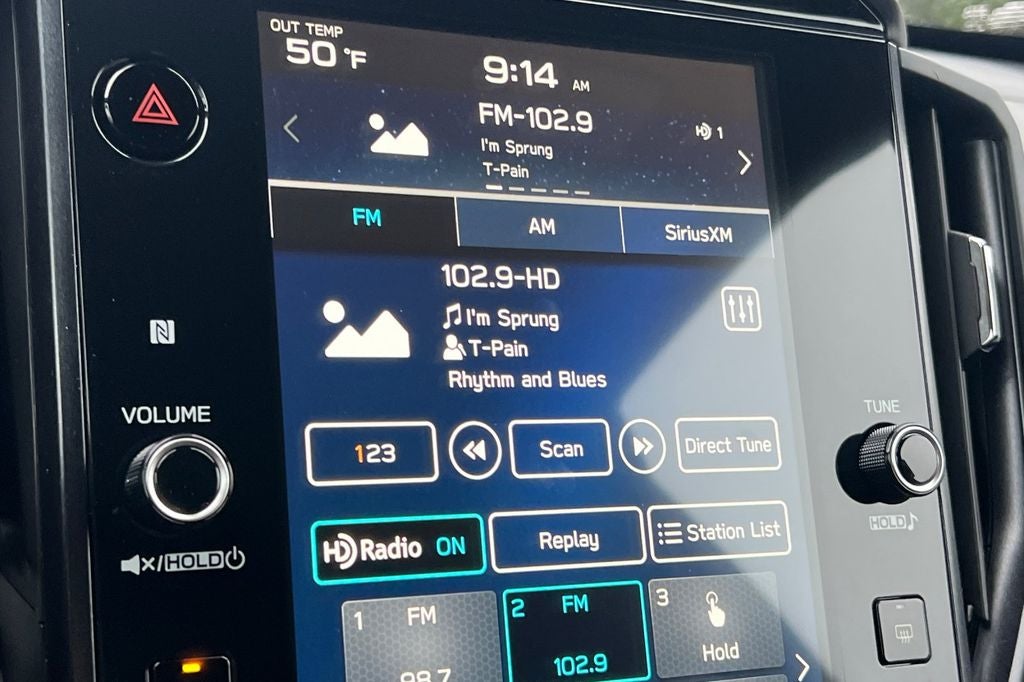 - Radio: Subaru 11.6" Multimedia Plus System -inc: valet mode, integrated center information display, AM/FM stereo HD Radio, multi-touch gesture high resolution display screen, voice activated controls, Bluetooth® audio streaming and hands-free phone connectivity w/SMS text messaging (refer to Subaru.com for cellphone compatibility), iPod control capability, smartphone integration: Android Auto and Apple CarPlay w/full screen view and wireless connection, SiriusXM satellite radio w/360L (free 4-month trial subscription included), USB and Over The Air (OTA) audio system update, steering wheel controls, 6 speakers, 3.5mm auxiliary input jack and roof mounted audio and satellite antenna
