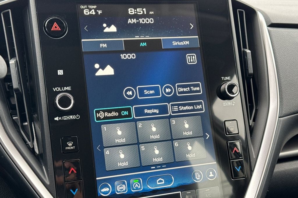 - Radio: Subaru 11.6" Multimedia Plus System -inc: valet mode, AM/FM stereo, HD Radio, multi-touch gesture high resolution display screen, voice activated controls, Bluetooth® audio streaming and hands-free phone connectivity, Bluetooth® hands-free SMS text messaging connectivity, iPod control capability, smartphone integration: wired and wireless Android Auto w/full screen view, wireless Apple CarPlay w/full screen view and wireless connection, USB and Over The Air (OTA) audio system update, audio system and Bluetooth® steering wheel control switches, 6 speakers (2 dash panel tweeter, 2 front door, 2 rear door), illuminated 3.5mm auxiliary input jack, illuminated USB A and C input charge ports, roof mounted satellite and connected services, roof mounted black antenna, connected services operation indicator, SOS emergency assistance (red button) and ehanced roadside assistance (blue i-button)