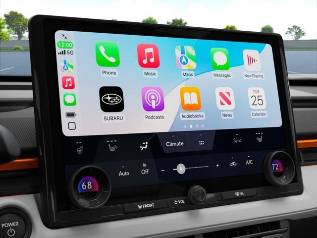 - Radio: Subaru 14" Multimedia System -inc: AM/FM stereo, HD radio, multi-touch gesture high resolution display screen, cloud navigation system (navigation subscription required), Bluetooth® audio streaming and hands-free phone connectivity (refer to subaru.com for cell phone compatibility), Bluetooth® hands-free SMS text messaging connectivity (refer to subaru.com for cell phone compatibility), SiriusXM radio (4 months free trial included/subscription required after), smartphone integration: Android Auto and Apple Carplay w/full screen view and wireless connection, integrated streaming (30 days trial included/subscription required after), assistant w/dual-zone voice control system w/driver and passenger headliner microphone, steering wheel talk switch and audio system, basic function operation, media operation and audio tune operation, USB and Over The Air (OTA) audio system update, USB/Map Over The Air (MOTA) navigation system update, steering wheel control switches for audio and Bluetooth®, 6 speakers, dual Qi (15W each), wireless charging pad, illuminated driver USB C input/charge port and illuminated passenger USB C charge port