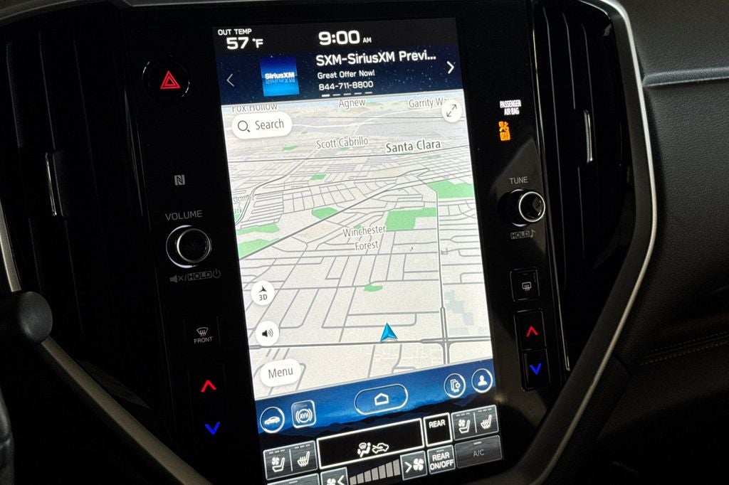 - Radio: Subaru STARLINK 11.6" Multimedia Nav System -inc: AM/FM stereo HD Radio, multi-touch gesture high resolution display screen, voice activated controls for radio and navigation, Bluetooth® audio streaming and hands-free phone connectivity w/SMS text messaging connectivity (refer to subaru.com for cell phone compatibility), Near Field Communication (NFC), TomTom navigation software w/What3Words, iPod control capability, SiriusXM All Access radio (4 months free trial/subscription required after), SiriusXM Traffic (3 years free trial/subscription required after), SiriusXM Travel Link (3 years free trial/subscription required after), smartphone integration for Android Auto and Apple CarPlay w/full screen view and wireless connection and STARLINK cloud applications, USB audio system update, TomTom navigation system update w/USB/Map Over The Air (MOTA) (3 years free map updates), steering wheel controls for audio and Bluetooth®, harman/kardon quantum logic surround sound speaker system w/14 speakers, subwoofer and harman/kardon 792 watt equivalent maximum output amplifier, 3.5mm illuminated auxiliary input jack, and illuminated USB A and C input/charge ports