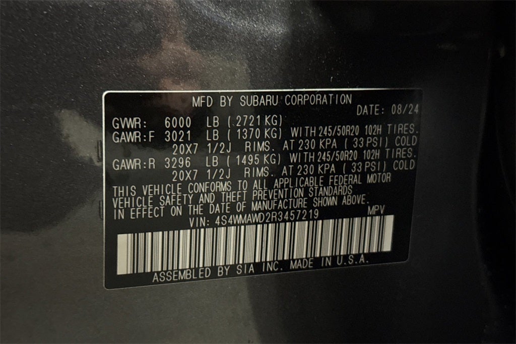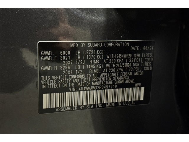 - Wheels: 20" x 7.5 J Dk Gray Alloy w/Machine Finish -inc: black wheel center cap w/Subaru 6 star logo