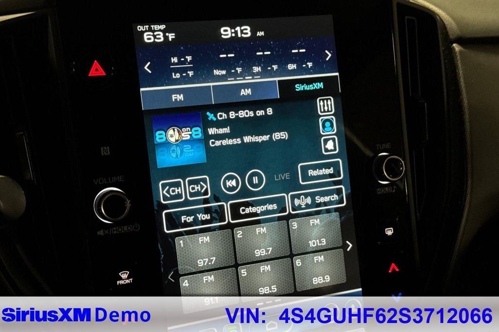 - Radio: Subaru 11.6" Multimedia Plus System -inc: AM/FM stereo, HD Radio, multi-touch gesture high resolution display screen, voice activated controls, Bluetooth® audio streaming and hands-free phone connectivity, Bluetooth® hands-free SMS text messaging connectivity, iPod control capability, SiriusXM w/360L (4 months free trial included/subscription required after), SiriusXM Travel Link (4 months free trial included/subscription required after), smartphone integration: Android Auto and Apple CarPlay w/full screen view and wireless connection, USB and Over The Air (OTA) audio system update, steering wheel audio system and Bluetooth® control switches, 6 speakers (2 dash panel tweeter, 2 front door and 2 rear door), illuminated 3.5mm auxiliary input jack, illuminated front USB A and C input/charge ports and illuminated rear USB A and C charge ports