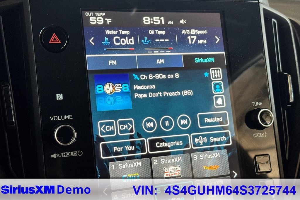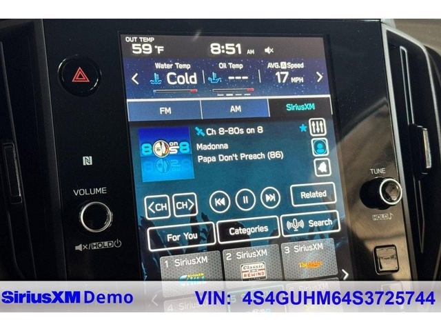 - Radio: Subaru 11.6" Multimedia Plus System -inc: AM/FM stereo, HD Radio, multi-touch gesture high resolution display screen, voice activated controls, Bluetooth® audio streaming and hands-free phone connectivity, Bluetooth® hands-free SMS text messaging connectivity, iPod control capability, SiriusXM w/360L (4 months free trial included/subscription required after), SiriusXM Travel Link (4 months free trial included/subscription required after), smartphone integration: Android Auto and Apple CarPlay w/full screen view and wireless connection, USB and Over The Air (OTA) audio system update, steering wheel audio system and Bluetooth® control switches, 6 speakers (2 dash panel tweeter, 2 front door and 2 rear door), illuminated 3.5mm auxiliary input jack, illuminated front USB A and C input/charge ports and illuminated rear USB A and C charge ports