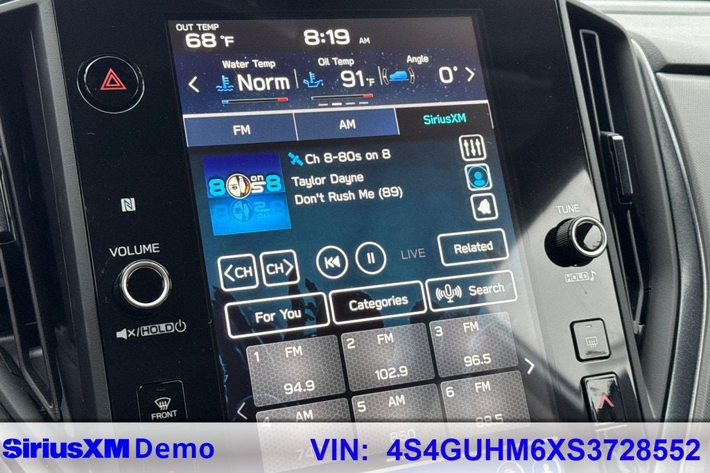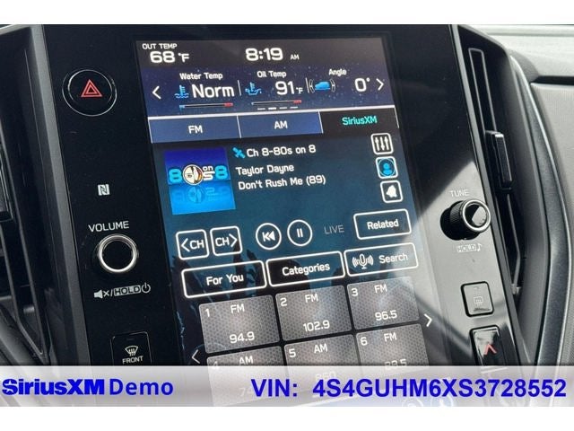 - Radio: Subaru 11.6" Multimedia Plus System -inc: AM/FM stereo, HD Radio, multi-touch gesture high resolution display screen, voice activated controls, Bluetooth® audio streaming and hands-free phone connectivity, Bluetooth® hands-free SMS text messaging connectivity, iPod control capability, SiriusXM w/360L (4 months free trial included/subscription required after), SiriusXM Travel Link (4 months free trial included/subscription required after), smartphone integration: Android Auto and Apple CarPlay w/full screen view and wireless connection, USB and Over The Air (OTA) audio system update, steering wheel audio system and Bluetooth® control switches, 6 speakers (2 dash panel tweeter, 2 front door and 2 rear door), illuminated 3.5mm auxiliary input jack, illuminated front USB A and C input/charge ports and illuminated rear USB A and C charge ports